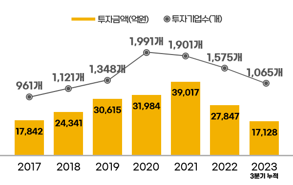 ※ 『혁신 벤처·창업기업(스타트업) 자금지원 및 경쟁력 강화 방안』(2023년, 관계부처 합동)에 따라 벤처투자회사 등과 신기술사업금융업자(이하 신기술금융사)등의 실적을 모두 포함